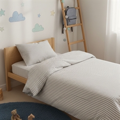 By Mats junior sengetøj 100x140 cm - hvid med grønne striber