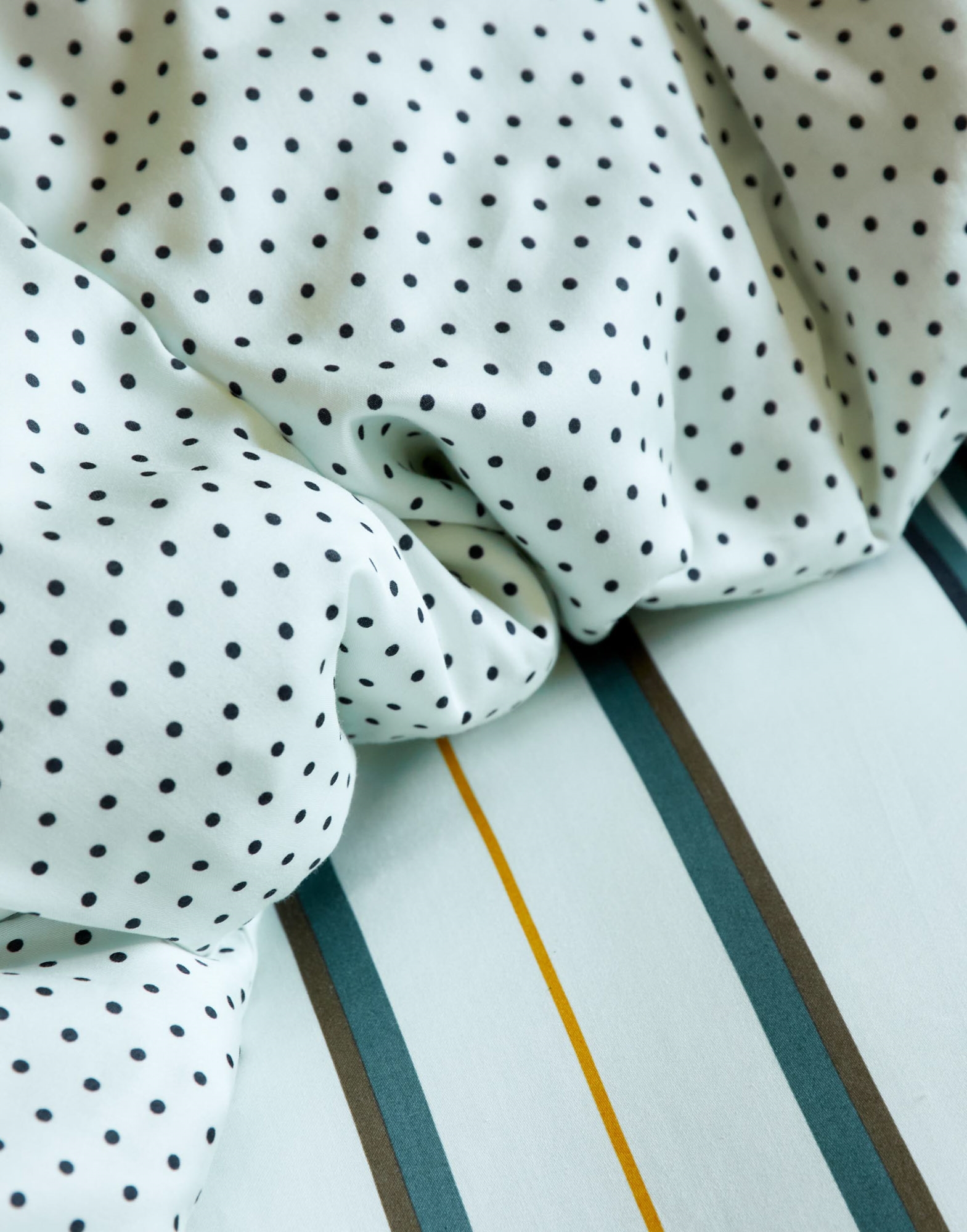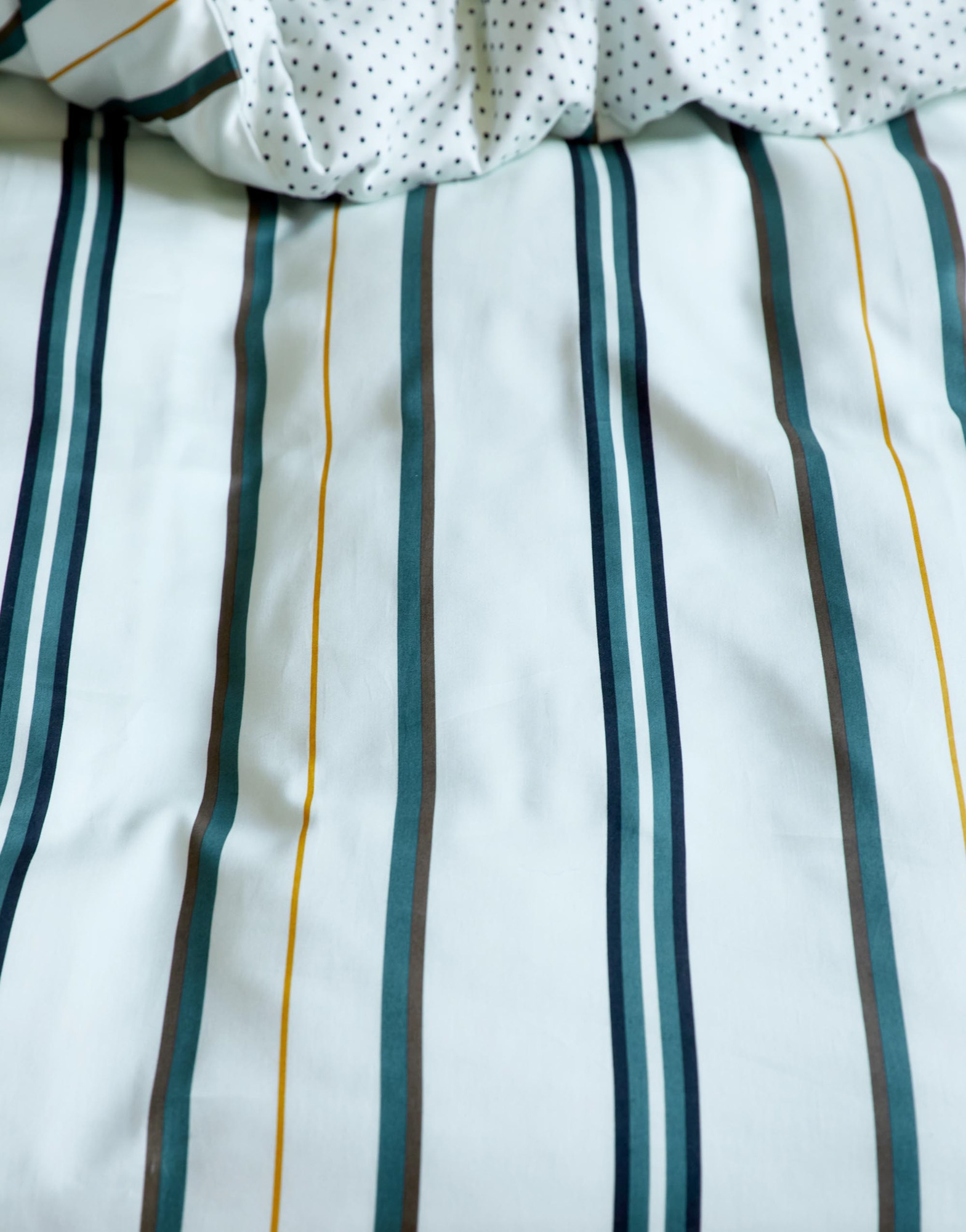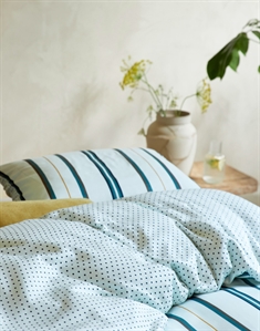 Forside » Sengetøj » Enkelt sengetøj » Enkelt sengetøj 140x200 cm Stribet sengetøj - 140x200 cm - Meryl - Vendbar sengesæt - 100% Bomuldssatin - Essenza sengetøj Spar25% Essenza 599,95449,95DKKSpar 150,- På lager Trustpilot Antal Læg i kurv Se mere fra: Essenza Artikelnummer: 8329-1 Har du spørgsmål til produktet? Blødt og glansfuldt100% bomuldssatinEssenza - Meryl Dynebetræk: 140x200 cm Pudebetræk: 1 stk. á 60x63 cm Materiale: 100% bomuldssatin Vævning: Ekstra fin 200TC (Thread count = antal tråde pr. kvadrat tomme) Farve: Blå Design: 2 i 1 - prikker og striber Brand: Essenza Lukning: Dyne lukkes med knapper og pudebetræk med overlap Vask: 60° Tørretumbling: Ja Strygning: Ja Certificering: STANDARD 100 by OEKO-TEX® (0906030) Sengetøj fra Essenza er fremstillet i 100% luksus bomuldssatin, hvilket giver sengesættet ekstra blødhed med rigtig god slidstyrke. Sengesættet er dobbelt faced dvs. vendbart med forskellige mønstre eller farve på hver side. Dyne lukkes med knapper og pudebetræk med overlap. Køb let pudebetræk til dine ekstra puder her ESSENZA HOME har designet og produceret stilfulde boligtekstiler i næsten 60 år. Virksomheden blev grundlagt i 1961 af Mr. Van Es. ESSENZA er kendt for deres glade og friske designs i et bredt udvalg. Frisk sengen og soveværelset op med et flot og lækkert sæt sengetøj som dette. Benyt samtidig muligheden for at sikre dig maximal sovekomfort, ved at tilføje et nyt blødt lagen af høj kvalitet. Du finder vores store sortiment af kvalitets lagner her Tilbage til Enkelt sengetøj 140x200 cm