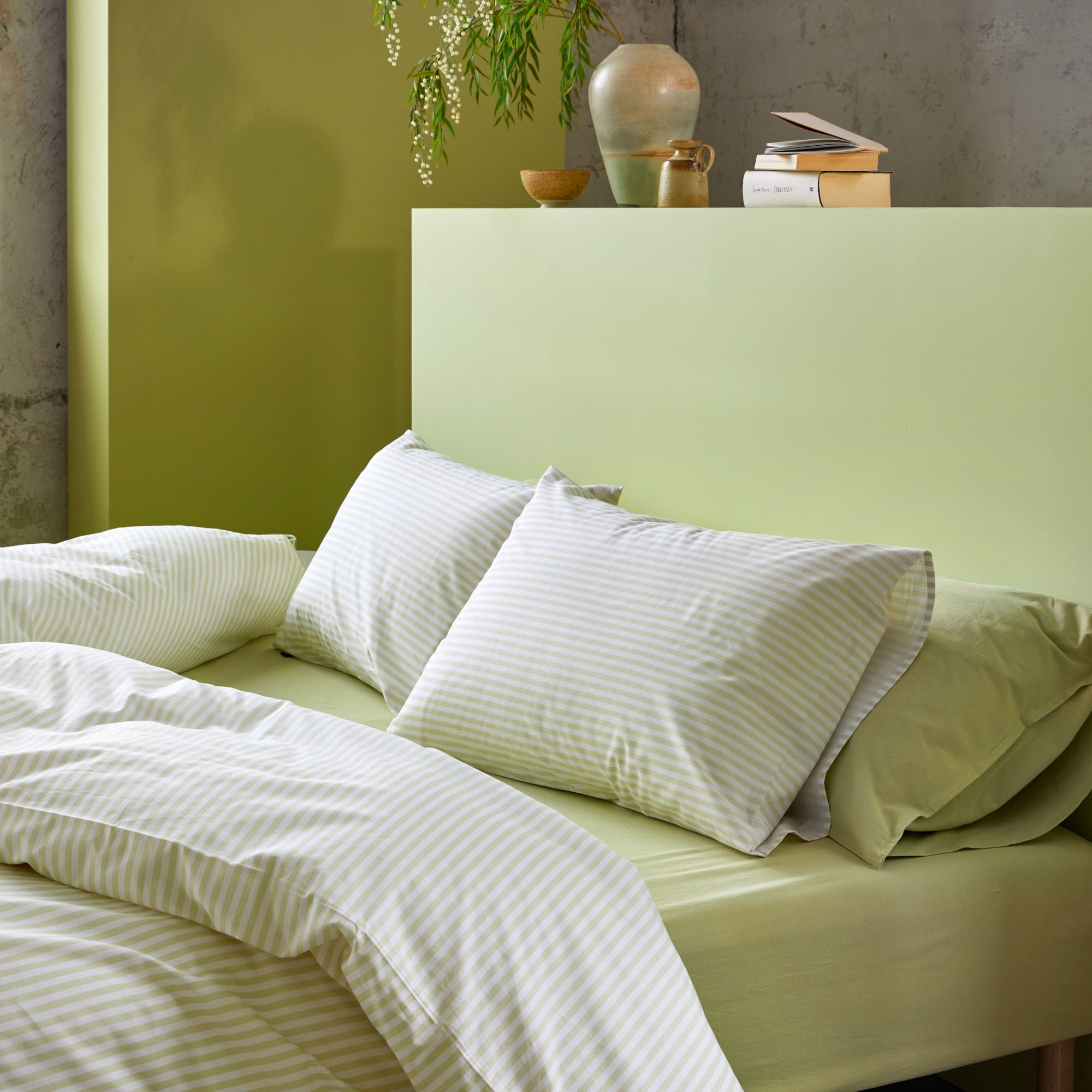 Forside » Sengetøj » Enkelt sengetøj » Ekstra langt sengetøj 140x220 cm Stribet sengetøj 140x220 cm - 100% ekstra fin bomuld - Tor lime - Sengelinned fra Høie of Scandinavia Spar46% Høie Of Scandinavia 649,95349,95DKKSpar 300,- På lager Trustpilot Antal Læg i kurv Se mere fra: Høie Of Scandinavia Artikelnummer: 7958-2 Læs vores sengetøjsguide Se vores store udvalg af lagner Har du spørgsmål til produktet? Blødt og glansfuldtEkstra fin bomuldEASY CARE behandlet - for mindre krøl Dynebetræk: 140x220 cm Pudebetræk: 1 stk. á 60x63 cm Materiale: 100% ekstra fin bomuld Vævning: Ekstra fin 220TC (Thread count = antal tråde pr. kvadrattomme) Farve: Lysegrøn Design: Tor Muted Lime Brand: Høie of Scandinavia Lukning: Dynebetræk med lynlås, pudebetræk med overlap Vask: 60° Tørretumbling: Ja Tåler strygning: Ja Certificering: EASY CARE behandlet, hvilket betyder det ikke krøller efter vask Certificering: STANDARD 100 by OEKO-TEX® (M27MV9610 OETI). Din garanti for at produktet er fri for sundhedsskadelig kemi. Blødt sengetøj i 100% ekstra fin bomuld, som føles blødt mod huden. Den tætte vævning giver en glat overflade og gør sættet åndbart og slidstærkt. Det rolige og enkle design gør at sengesættet passer ind i de fleste soveværelser. Bomuld er et naturligt materiale, der sikrer en komfortabel temperatur hele natten. Dette stribet sengesæt er produceret af 100% ekstra fin bomuld, som er blødt og ikke mindst giver en glat overfalde. Den ekstra fine bomuld er kendt for sin renhed og store slidstyrke. Sengesættet er ikke kun blødt og behageligt, men også utroligt slidstærkt, let og hurtigtørrende. Dette smukke og elegante sengetøj er produceret med høj farveægtehed. Sengesættet er OEKO-TEX certificeret, hvilket betyder, at det er testet fri for sundhedsskadelige kemikalier. Dette er et tegn på ansvarlig produktion, som ikke kun gavner miljøet, men også for vores krop og hud, da det reducerer risikoen for allergiske reaktioner. Derudover er sengelinned også Easy Care behandlet, for mindre krøl og bedre facon vask efter vask. Easy Care gør dit sengetøj ekstra komfortabelt og let at stryge. Se det store sortiment fra Høie her Høie er et Skandinavisk brand som står for tradition forenet med nytænkning. Firmaet har eksisteret siden 1850 og har gennem årene været med til at forme og udvikle Skandinavisk tekstil og designs. Sengetøj fra Høie, er hverdags luksus som alle fortjener. Find kvalitets lagner her Tilbage til Ekstra langt sengetøj 140x220 cm