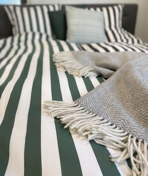 Stribet sengetøj - Blødt bomuldssatin - Nordic Stripe - Grønt og hvidt sengesæt