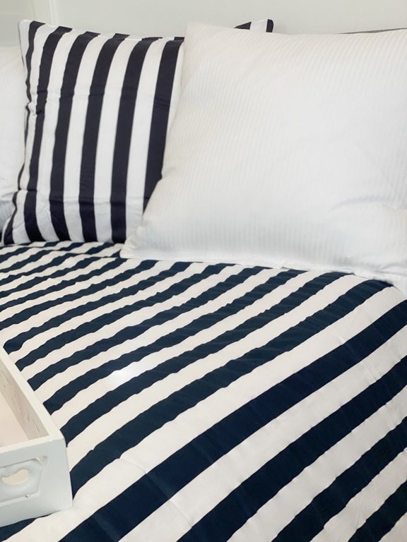 Forside » Sengetøj » Dobbelt sengetøj » Dobbelt sengetøj 200x220 cm Stribet sengetøj til dobbeltdyne - 200x220 cm - Blødt bomuldssatin - Nordic Stripe - Blåt og hvidt sengesæt 2 x PudebetrækSpar56% Borg LivingBy Night 899,95399,95DKKSpar 500,- På lager Trustpilot Antal Læg i kurv Se mere fra: Borg Living Artikelnummer: 353-5 Læs vores sengetøjsguide Se vores store udvalg af lagner Se vores store udvalg af dyner 200x220 Har du spørgsmål til produktet? Nordic Stripe100% bomuldssatin Ekstra blødt og fint Dynebetræk: 200x220 cm Pudebetræk: 2 stk. á 60x63 cm Materiale: 100% blødt bomuldssatin Vævning: Ekstra fin 230TC (Thread count = antal tråde pr. kvadrat tomme) Farve: Blå og hvid Design: Nordic stripe Brand: By Night Lukning: Dyne- og pudebetræk med indvendig skjult YKK lynlås Vask: 60° Tørretumbling: Ja Tåler strygning: Ja Certificering: STANDARD 100 by OEKO-TEX® (2018OK0658) Nordic stripe sengetøj er fremstillet i 100% bomuldssatin, med en ekstra fin og tæt vævning. Sengetøjet har en naturlig glans og blødhed, der giver sengesættet et elegant look, samtidig med at det føles blødt og lækkert mod huden. Bomuldssatin er åndbart og hjælper med at regulere kropsvarmen, hvilket gør det behageligt at sove i året rundt. Bomuldssatin er slidstærkt, 100% farveægte og holdbart, som betyder, at sengetøjet bevarer sin kvalitet og udseende selv efter gentagne vaske. Sengesættet er OEKO-TEX® certificeret. Certificeringen sikrer, at produktet ikke indeholder sundhedsskadelige stoffer, og at det er produceret under ordentlige forhold, så du kan sove trygt om natten -så passer vi også godt på miljøet. Dyne- og pudebetræk lukkes med indvendigt skjult YKK lynlås. Køb let matchende pudebetræk til dine ekstra puder her Frisk sengen og soveværelset op med et flot og lækkert sengesæt som dette. Benyt samtidig muligheden for at sikre dig maximal sovekomfort, ved at tilføje et nyt blødt lagen af høj kvalitet. Du finder vores store sortiment af kvalitets lagner her By Night er kendetegnet af dansk design - de giver dig behagelige sovekomponenter til dit nattemiljø i allerhøjeste kvalitet. By Night producerer sengetøj og lagner til hele familien og lægger stort vægt på tidens trends, således at produktionen altid indebærer moderigtige farver og designs. Tilbage til Dobbelt sengetøj 200x220 cm