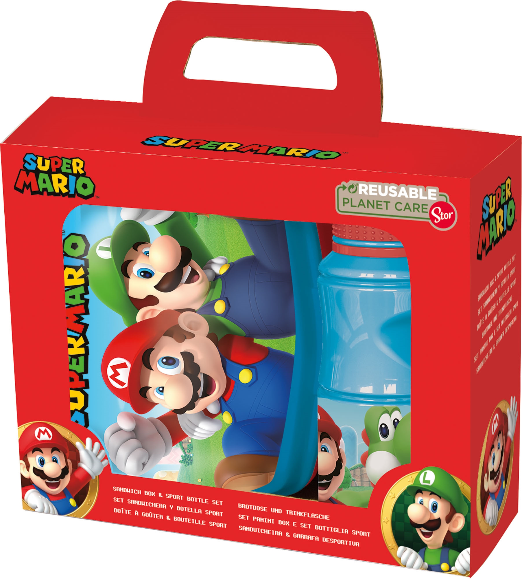 Forside » Indretning » Børneværelset Super Mario madkasse og drikkedunk - madkassesæt i 2 dele til børn - Super Mario og Luigi Spar41% Licens 169,9599,95DKKSpar 70,- Få på lager Trustpilot Antal Læg i kurv Se mere fra: Licens Artikelnummer: 75273 Har du spørgsmål til produktet? Super Mario designBPA-fri plastPerfekt til frokost på farten Type: Madkasse og drikkedunk Madkasse: H5,5 cm - B14,5 cm - L17,5 cm Rum: 1 Drikkedunk: 420 ml Drikkedunk mål: Ø6 cm - H16 cm Materiale: Plast, BPA fri Farve: Blå og rød Design: Super Mario Alder: 4+ Super Mario madkassesæt Dette madkassesæt er ideelt til at gøre frokosttiden mere spændende for dit barn. Sættet, der består af en madkasse og en drikkedunk, har et flot og børnevenligt design, der vil glæde ethvert lille barn. Dette madkassesæt er fremstillet af BPA-fri plast, hvilket sikrer, at dit barn kan spise og drikke af produkterne, uden du behøver at bekymre dig om skadelige kemikalier. BPA-fri plast er et sikkert og holdbart materiale til både drikkedunke og madkasser. Plasten er også let, hvilket gør dem nemme at bære for barnet, men samtidig robust nok til daglig brug. Tilbage til Børneværelset