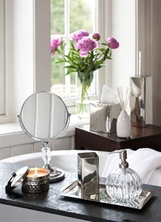 Det stilrene design med glat overflade og neutral krom farve gør, at tandbørstekruset let passer ind i ethvert badeværelse — uanset om stilen er minimalistisk, skandinavisk, moderne eller klassisk. Det er en lille, men vigtig detalje, der hjælper med at give badeværelset et samlet og elegant udtryk.