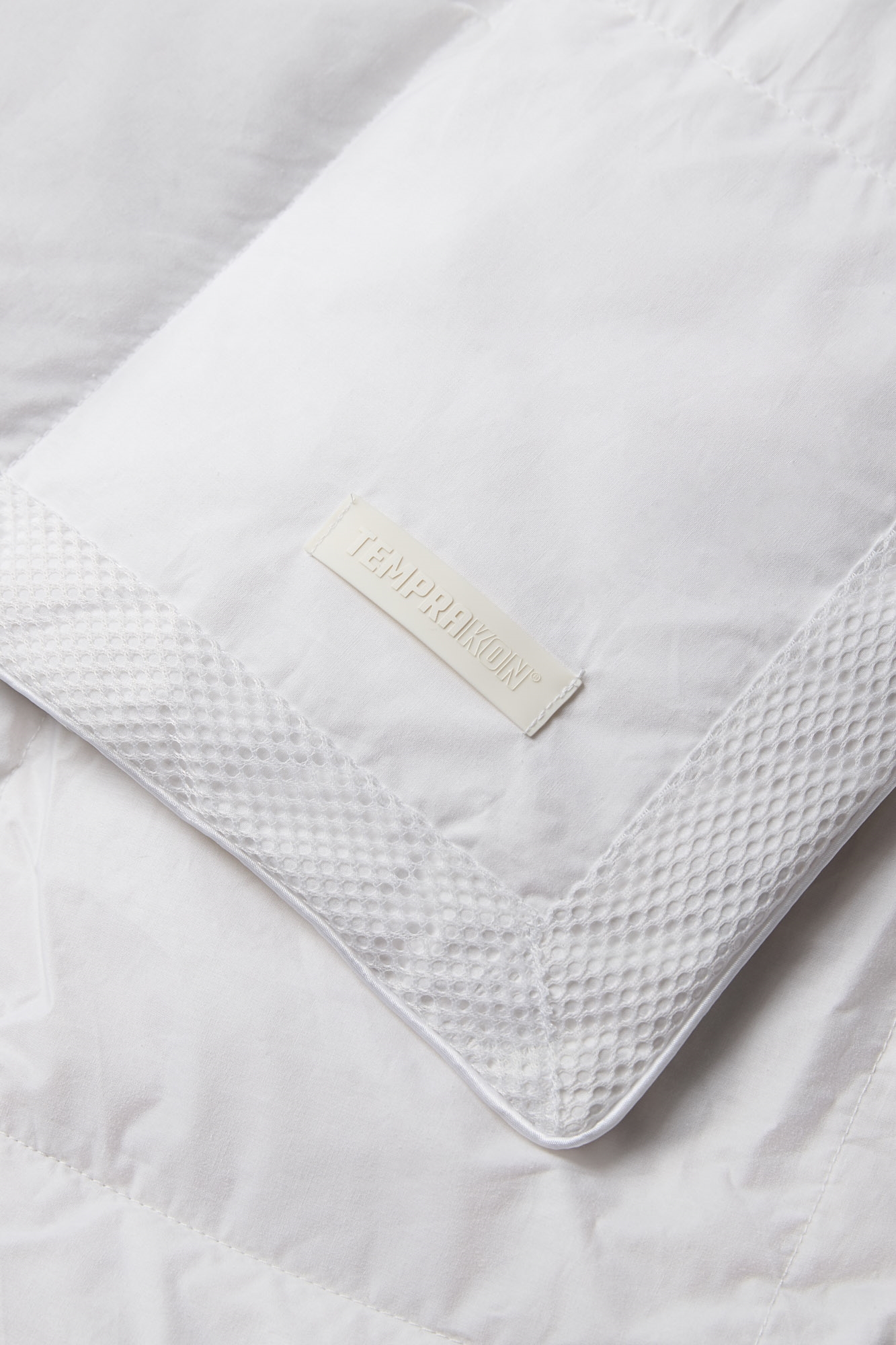 Forside » Top og rullemadrasser » Rullemadrasser Temperatur regulerende Rullemadras - 180x210 cm - Downtopper Temprakon Zone Spar30% Temprakon 3.549,952.499,95DKKSpar 1.050,- Gratis fragt på denne varePå lager Trustpilot Vælg størrelse Vælg variant Antal Læg i kurv Se mere fra: Temprakon Artikelnummer: 1010405 Læs vores rullemadras guide Se vores store udvalg af ekstra lange lagner Se vores udvalg af topmadrasser Har du spørgsmål til produktet? Størrelse: 180x210 cm.Materiale: 60% hvide dun 40% småfjer (naturfyld)Temprakon Zone Downtopper Størrelse: 180x210 cm Højde: ca. 2 cm. Fyldvægt: 1050g Fyldmateriale: 60% hvide dun 40% småfjer (naturfyld) Betræk: 100% Bomuld Elastik: Ja Type: Rullemadras med temperatur regulerende lag Konstruktion: Kassettesyet Vask: 60 grader - Vigtigt at anvende enzymfrit vaskemiddel Certificering: STANDARD 100 by OEKO-TEX® (1176-194) Certificering: NOMITE Certificering: Down PASS Certificering: FRESH Certificed space technology Certificering: Space certificeret Se lagner i samme størrelse Rullemadras / Downtopper bruges til at lægge oven på din eksisterende topmadras, og derved opnår du en suveræn temperaturregulering. Når du lægger dig på rullemadrassen, føles den umiddelbar kold, men efterhånden som den optager din varme, begynder den at regulere din temperatur, så du bliver sval, når du er varm, og lun når du er kold. En super lækker rullemadras med aktiv temperaturregulering. Rullemadrassen er udstyret med praktiske elastikker i hjørnerne, således at rullemadrassen forbliver liggende fast på din topmadras. Formålet med en rullemadras er, at skåne din madras og/eller topmadras mod fugt, snavs og bakterier, derfor kaldes en rullemadras oftest også for en madrasbeskytter eller skånemadras. Når du anvender en rullemadras er du derfor med til at forlænge levetiden på din seng eller topmadras, samtidig med at du opnår et sundere sovemiljø. Rullemadrassen kan krympe efter vask (5-9%), det er derfor vigtigt, at strække ud i rullemadrassen under tørring. Temprakon Zone Duntopper - Downtopper er en vaskbar rullemadras - Perfekt til dig der ønsker at regulere sengens temperatur. Kombineret med Temprakon dyner og puder skabes den perfekte klimazone til en god nats søvn. Tilbage til Rullemadrasser