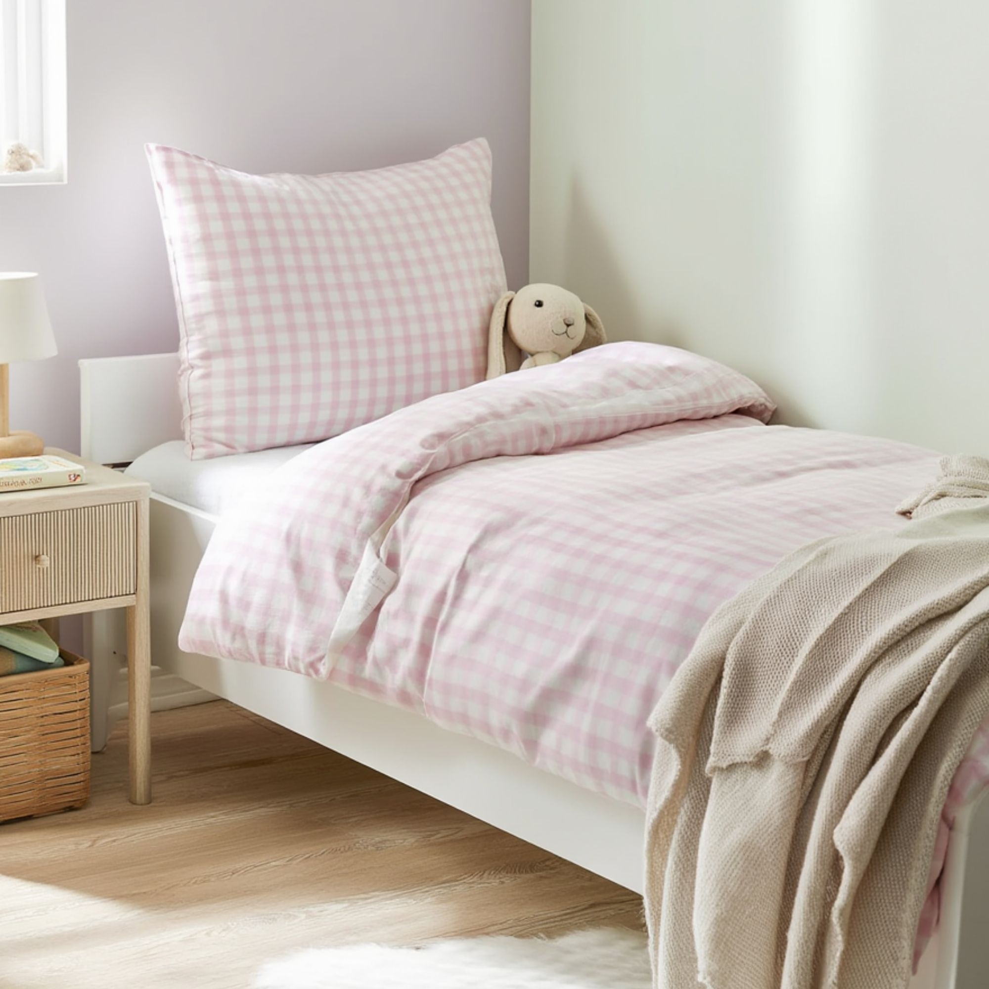 By Mats babysengetøj 70x100 cm - hvidt og lyserødt med tern