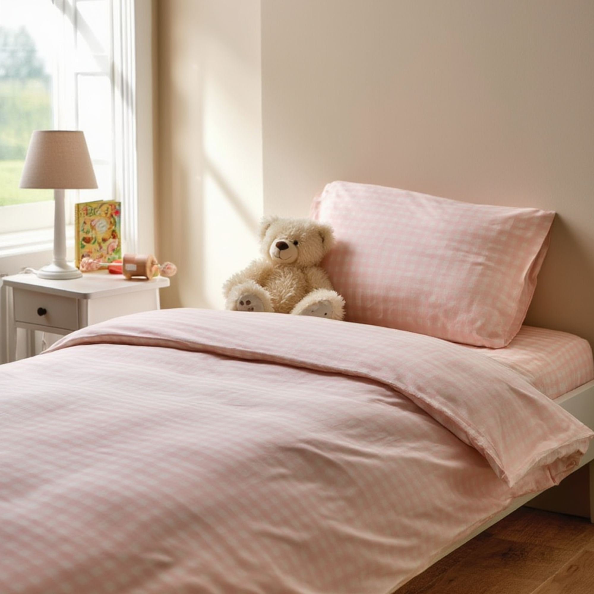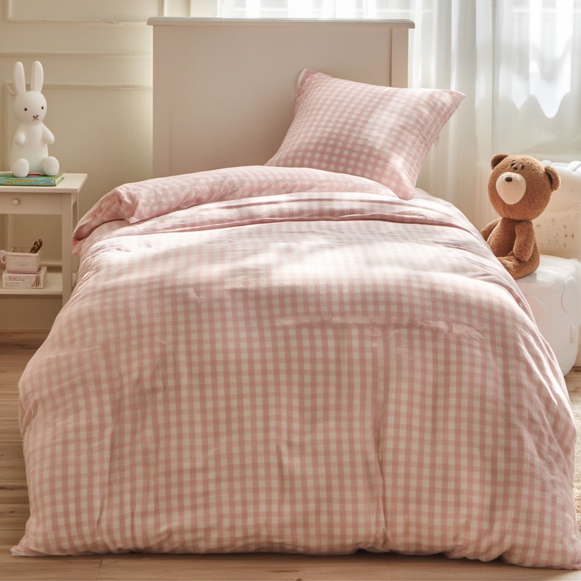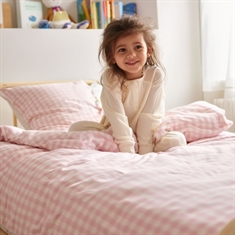 By Mats junior sengetøj 100x140 cm - hvidt og lyserødt med tern
