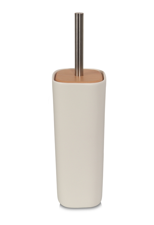 Denne toiletbørste på 38 cm er et enkelt, praktisk og stilfuldt valg til ethvert badeværelse. Den klassiske hvide beholde med et træ look låg som børsten står i, har et tidløst design, som gør den nem at matche med både moderne og traditionelle badeværelsesmiljøer.