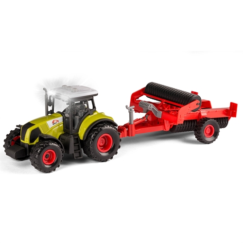 Forside » Legetøj » Forårsleg Traktor med stor trumle i grøn - Funktionelt legetøj til bygge og landbrugsleg HOME-TEX Skarp pris: 129,95DKK Få på lager Trustpilot Antal Læg i kurv Se mere fra: HOME-TEX Artikelnummer: LEG-VN41856-A Har du spørgsmål til produktet? Traktor med lys og lyd, for mere realistisk legGiver mulighed for kreativ leg med transport og opgaverVelegnet til både inde og udendørs leg Funktionel traktor med trumle til landbrug og transportleg Traktor med tromle er et funktionelt og realistisk legetøj, der giver børn mulighed for at lege med landbrug, byggeopgaver og transport. Tromlen tilføjer en ekstra dimension til legen, hvor barnet kan efterligne arbejdsopgaver som jordbearbejdning og vejarbejde. Det er ideelt til børn, der elsker maskiner og praktisk rolleleg. Funktioner og design Traktoren er udstyret med anhængertræk, så tromlen nemt kan kobles på og bruges i legen. Den er designet til daglig leg og er nem at håndtere for små hænder, hvilket gør den velegnet til både inde- og udendørs brug. Med friktion, lys og lyd bliver legen mere levende og spændende, og de medfølgende 3 stk. knapcellebatterier gør den klar til brug med det samme. I scala 1:32 får traktoren en realistisk størrelse, som passer godt til aktiv leg. Børn kan skabe scenarier med landbrug, anlægsarbejde og transport, hvor traktoren med tromle indgår i mange forskellige situationer. Tromlen giver ekstra variation og gør legen mere fleksibel og realistisk. Perfekt til leg og hverdagsbrug Traktoren egner sig godt til sandkasse, have og indendørs leg, hvor barnet kan udforske og skabe egne historier med maskiner og arbejdsopgaver. Tilbage til Forårsleg