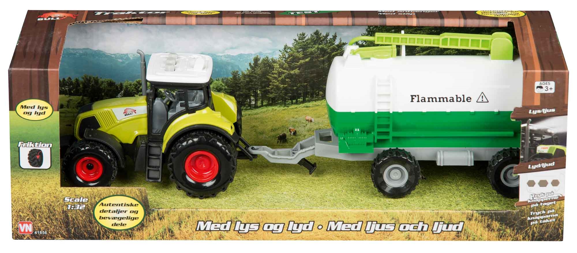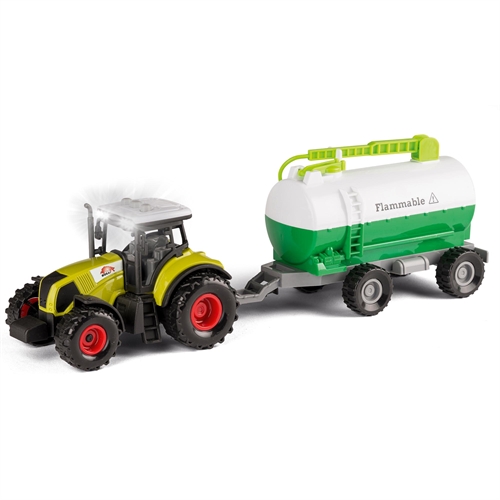 Forside » Legetøj » Forårsleg Traktor med stor gyldevogn i grøn - Funktionelt legetøj til bygge og landbrugsleg HOME-TEX Skarp pris: 129,95DKK Få på lager Trustpilot Antal Læg i kurv Se mere fra: HOME-TEX Artikelnummer: LEG-VN41856-D Har du spørgsmål til produktet? Traktor med lys og lyd, for mere realistisk legGiver mulighed for kreativ leg med transport og opgaverVelegnet til både inde og udendørs leg Funktionel traktor med gyldevogn til landbrug og transportleg Traktor med gyldevogn er et funktionelt og realistisk legetøj, der giver børn mulighed for at lege med landbrug, transport og praktiske opgaver på gården. Gyldevognen tilføjer en ekstra realistisk dimension, hvor barnet kan efterligne rigtige arbejdsopgaver i landbruget. Det er ideelt til børn, der elsker maskiner og praktisk rolleleg. Funktioner og design Traktoren er udstyret med anhængertræk, så gyldevognen nemt kan kobles på og bruges i legen. Den er designet til daglig leg og er nem at håndtere for små hænder, hvilket gør den velegnet til både inde- og udendørs brug. Med friktion, lys og lyd bliver legen mere levende og spændende, og de medfølgende 3 stk. knapcellebatterier gør den klar til brug med det samme. I scala 1:32 får traktoren en realistisk størrelse, som passer godt til aktiv leg. Børn kan skabe scenarier med landbrug, transport og gårdarbejde, hvor traktoren og gyldevognen indgår i mange forskellige situationer. Det giver masser af muligheder for kreativ og realistisk rolleleg. Perfekt til leg og hverdagsbrug Traktoren egner sig godt til sandkasse, have og indendørs leg, hvor barnet kan udforske og skabe egne historier med landbrug og maskiner. Tilbage til Forårsleg