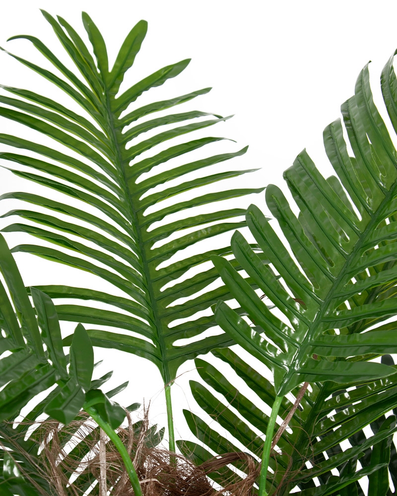 En af de største fordele ved denne kunstige palme er, at den ikke kræver nogen vedligeholdelse. Du behøver ikke at vande den, beskære den eller bekymre dig om, at den får nok lys. Det eneste, den kræver, er en lejlighedsvis aftørring med en fugtig klud for at holde den støvfri.