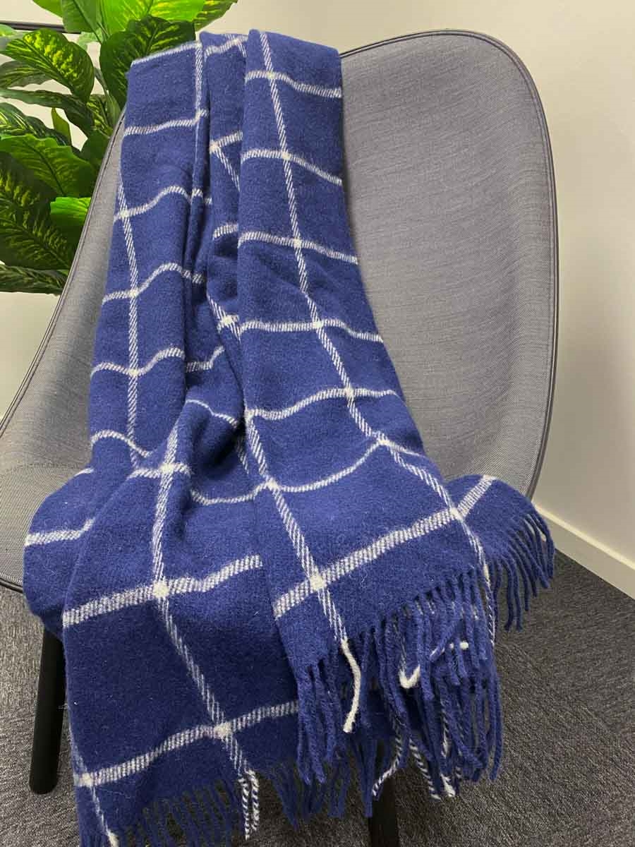 En af de mest unikke egenskaber ved denne uldplaid er dens to forskellige blå nuancer. Denne funktion giver dig mulighed for at ændre udtrykket i din indretning efter behov og humør. Uanset hvilken side du vælger, vil den rige, dybe blå farve tilføje et sofistikeret touch til dit hjem.