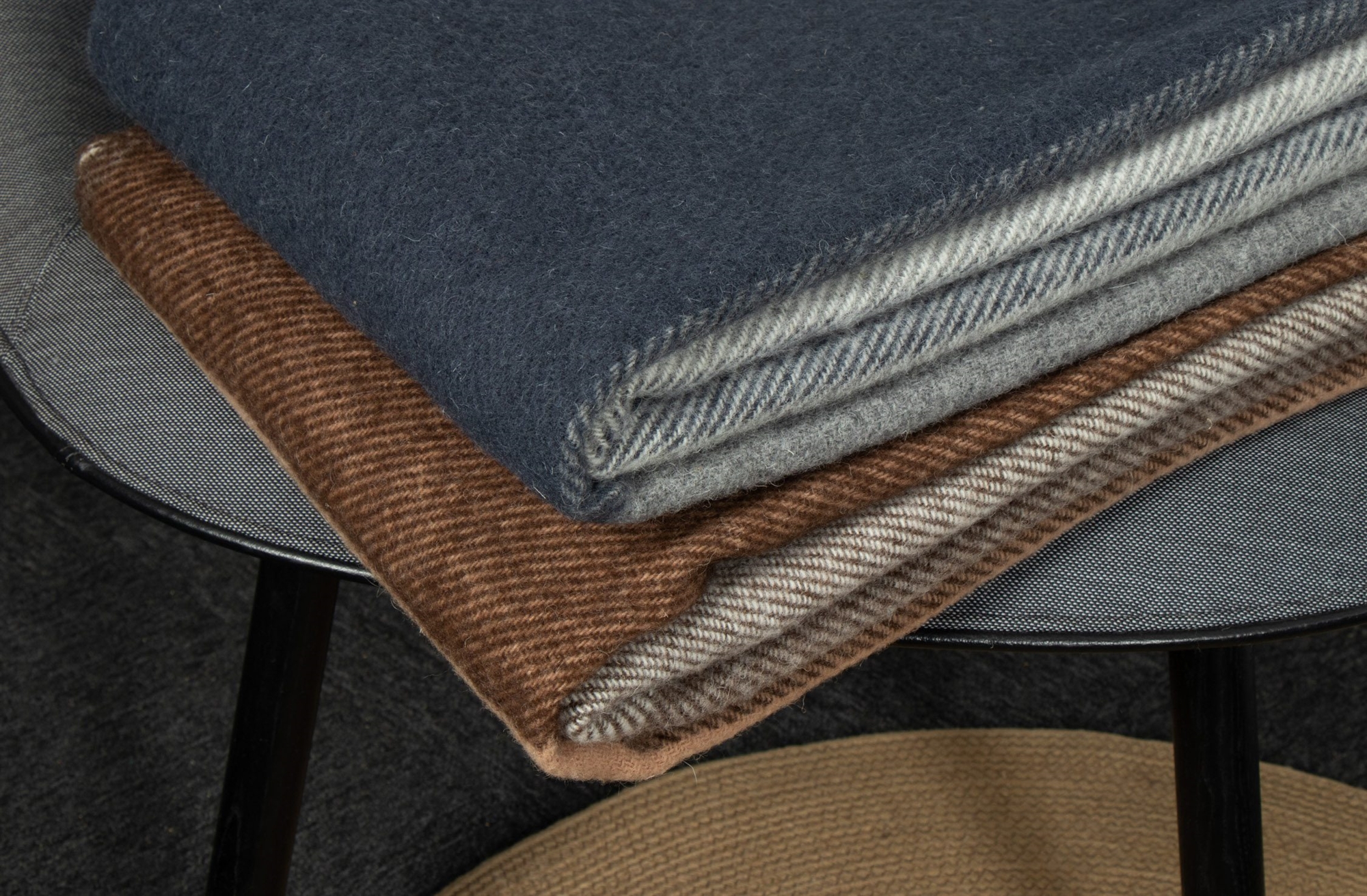Uld er et naturligt materiale, der er kendt for sin varme og blødhed. Uld er også selvrensende takket være dets naturlige lanolin indhold. Dette betyder at dit tæppe vil forblive rent og friskt i længere tid, uden behov for hyppig vask. Ofte er det tilstrækkeligt at lade plaiden hænge udenfor i et par timer, så den bliver frisk igen. Hvis det alligevel er nødvendigt at vaske din plaid, anbefales det generelt, at håndvaske plaider i koldt vand, med enzymfrit vaskemiddel. Lad plaiden ligge og tørre fladt så det bevare sin form.