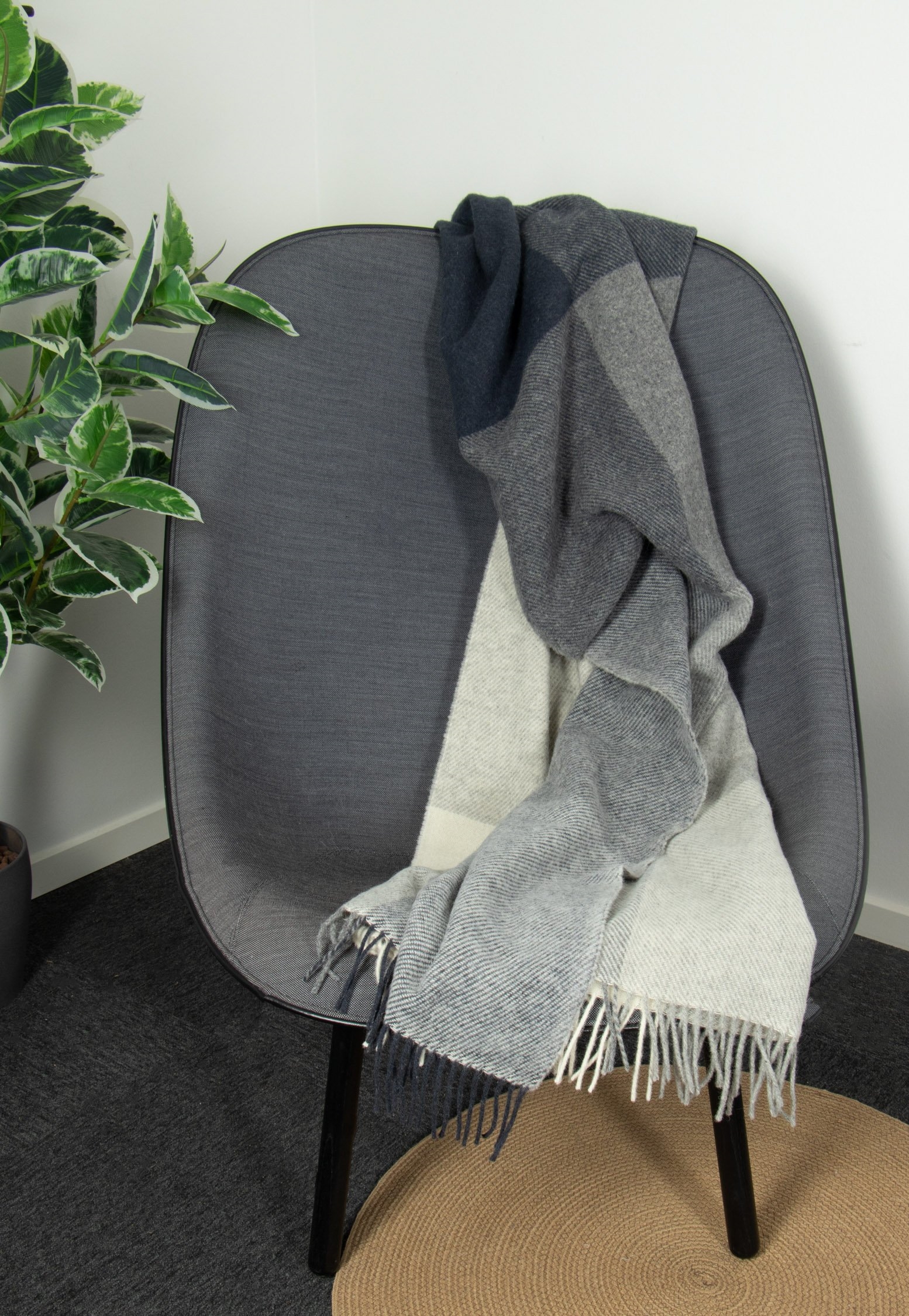 Uldplaid - 100% Ny ren uld  - 130x200 cm - Blødt uldtæppe i ternet blå - Nordstrand Home plaid