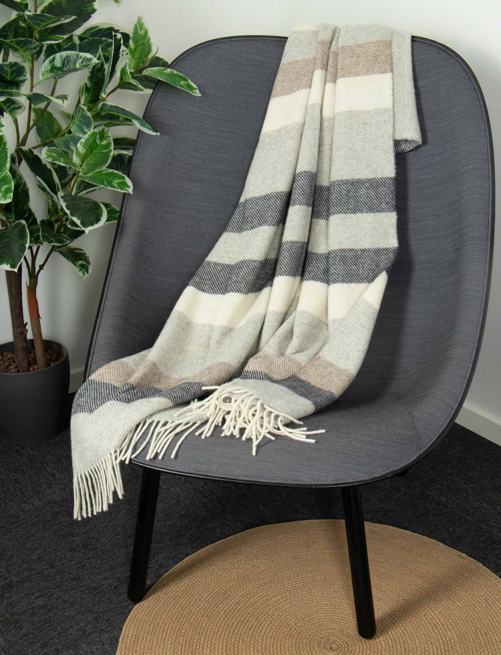 Med et plaid produceret af 100% ny ren uld, får du et tæppe der har en fantastisk blødhed og varme, et tæppe som du vil elske at svøbe dig i. Plaiden måler 130x200 cm - en perfekt størrelse til hygge på kølige aftener, uanset om du slapper af i sofaen, læser en bog i lænestolen, eller sidder på terrassen en sen sommeraften.
