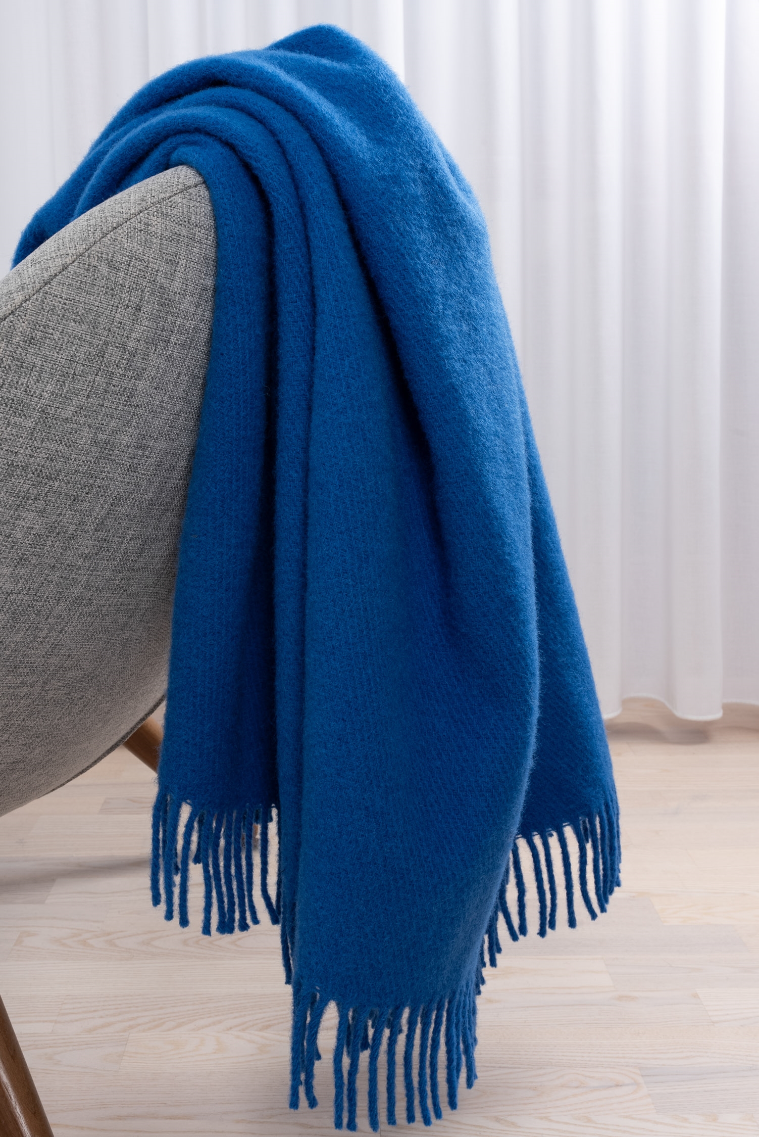 En af de mest unikke egenskaber ved denne uldplaid er dens to forskellige blå nuancer. Denne funktion giver dig mulighed for at ændre udtrykket i din indretning efter behov og humør. Uanset hvilken side du vælger, vil den rige, dybe blå farve tilføje et sofistikeret touch til dit hjem.
