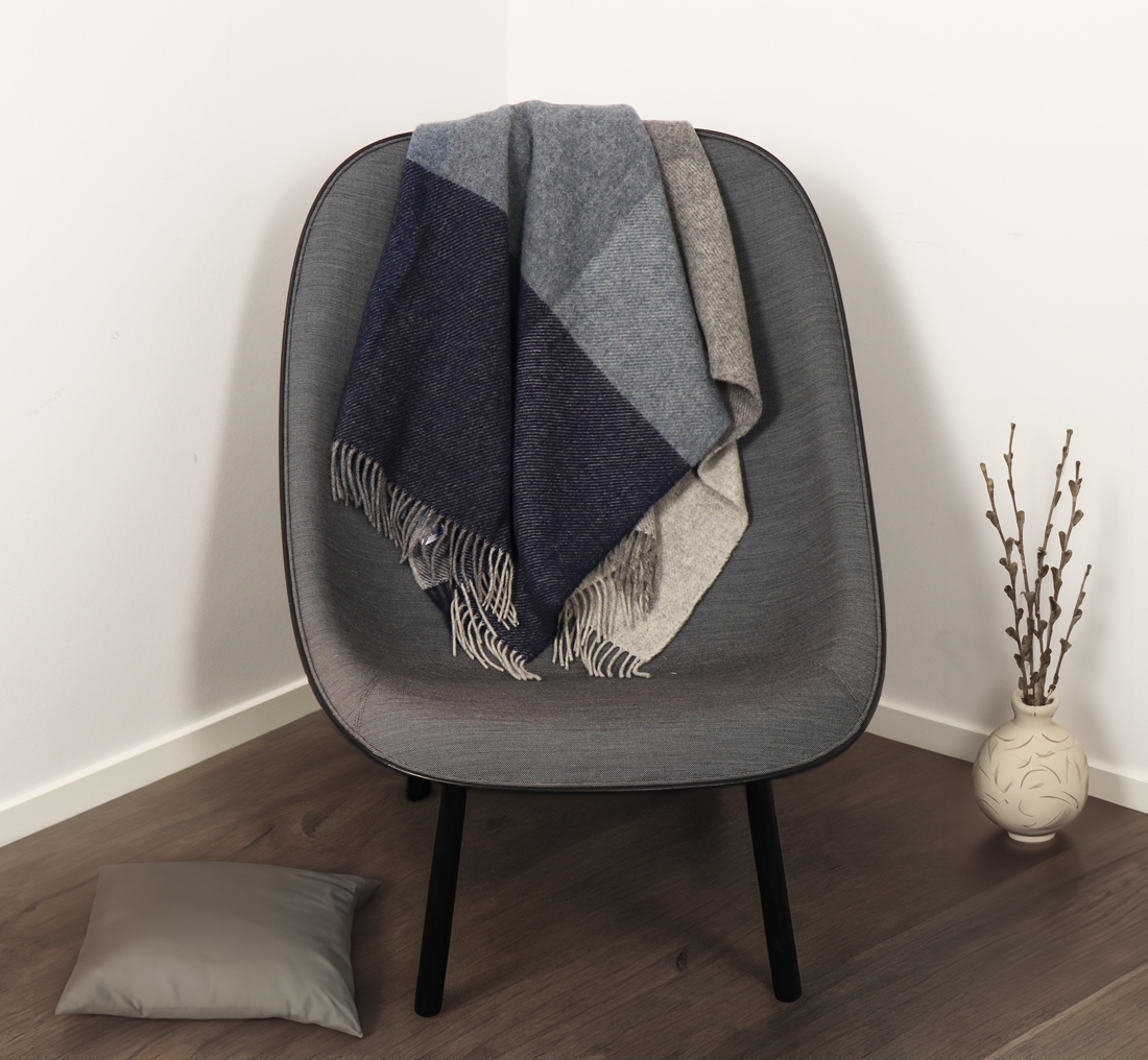 Uld er et naturligt materiale, der er kendt for sin varme og blødhed. Uld er også selvrensende takket være dets naturlige lanolin indhold. Dette betyder at dit tæppe vil forblive rent og friskt i længere tid, uden behov for hyppig vask. Ofte er det tilstrækkeligt at lade plaiden hænge udenfor i et par timer, så den bliver frisk igen. Hvis det alligevel er nødvendigt at vaske din plaid, anbefales det generelt, at håndvaske plaider i koldt vand, med enzymfrit vaskemiddel. Lad plaiden ligge og tørre fladt så det bevare sin form.