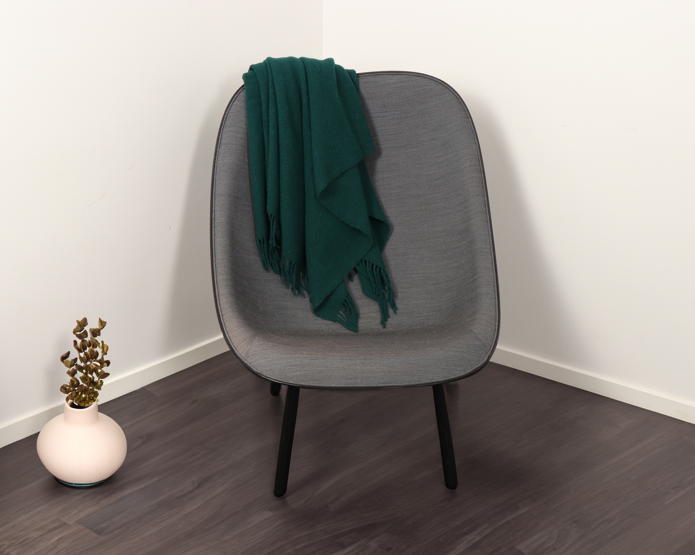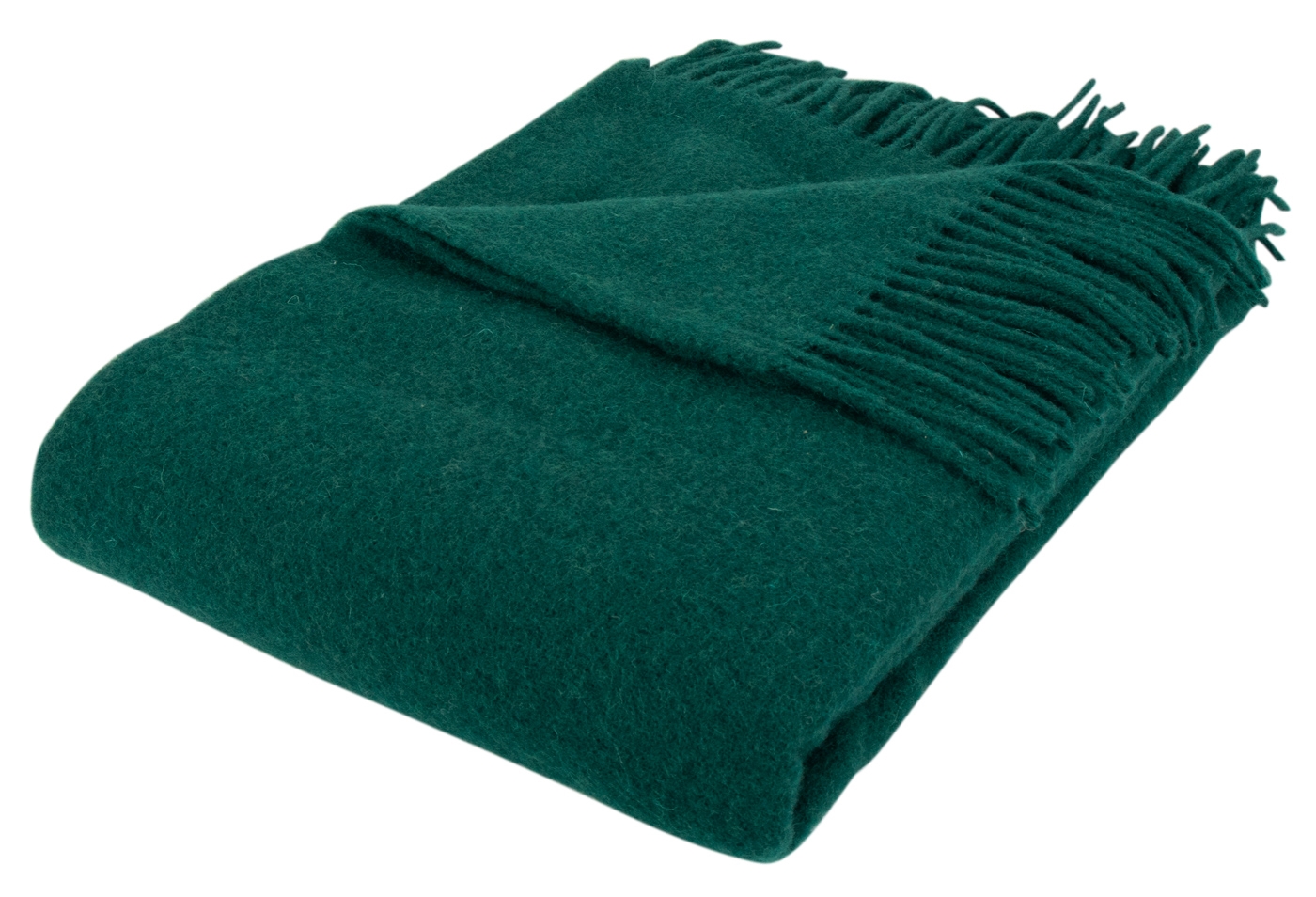 Uldplaid - 100% Ny ren uld  - 130x200 cm - Blødt uldtæppe i ensfarvet mørkegrøn - Nordstrand Home plaid