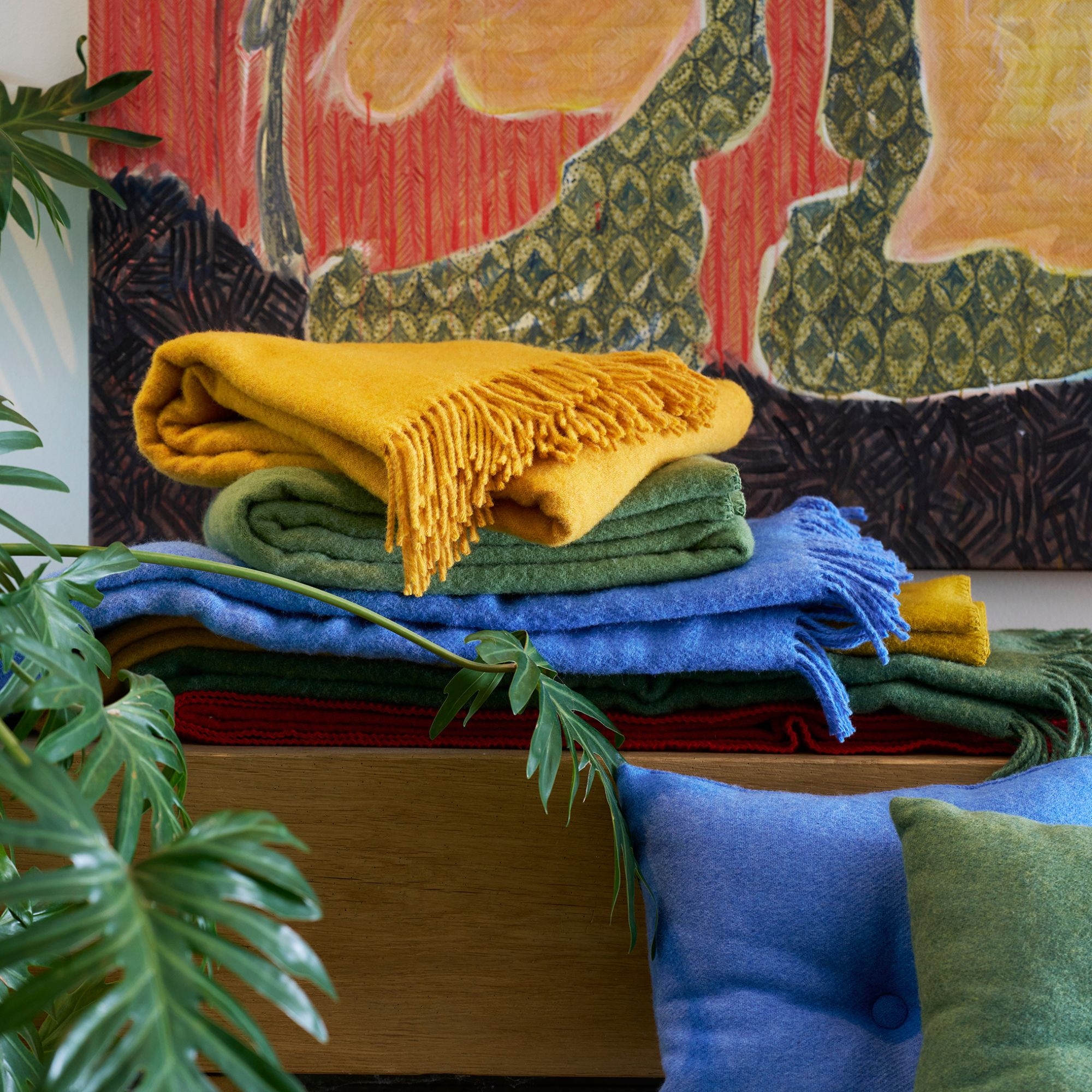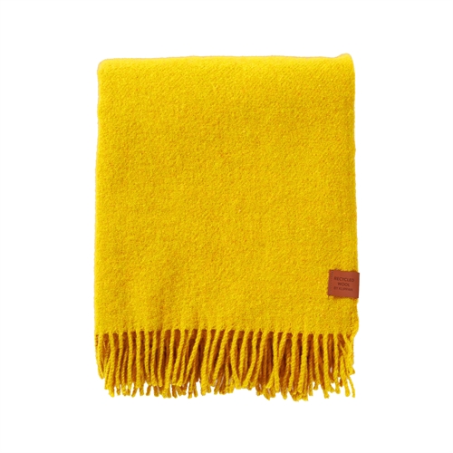 Det særlige ved denne plaid er brugen af genbrugsuld, som stammer fra overskydende materialer i produktionen. Det betyder, at hver plaid får sit helt eget unikke udtryk med naturlige variationer i farven. Den gule nuance tilfører hjemmet en hyggelig og indbydende stemning og passer perfekt ind i moderne nordisk indretning.