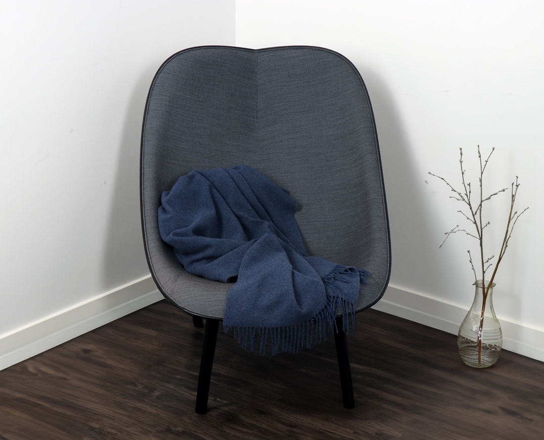 Uldplaid - 40% Cashmere - 130x200 cm - Ensfarvet blåt uldtæppe - By Borg plaid