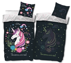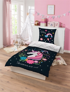 Forside » Sengetøj » Børne sengetøj » Junior sengetøj 100x140 cm Unircorn sengetøj 100x140 cm - Sengesæt med enhjørning - 2 i 1 design - Glow in the dark sengetøj - 100% bomuld Licens 149,95DKK På lager Trustpilot Antal Læg i kurv Se mere fra: Licens Artikelnummer: 288-8 Læs vores sengetøjsguide Se vores store udvalg af lagner Se vores store udvalg af dyner 100x140 Har du spørgsmål til produktet? Høj åndbarhed100% blød bomuldOEKO-TEX® certificeret Dynebetræk: 100x140 cm - junior sengesæt Pudebetræk: 40x45 cm Materiale: 100% blød bomuld Farve: Stort Motiv: Unicorn Design: Vendbar - Selvlysende forside med motiv af en unicorn, bagside med all-over print af stjerneskud Lukning: Dyne med knapper og pudebetræk med overlap Vask: 60° Tørretumbling: Ja Tåler strygning: Ja Certificering: STANDARD 100 by OEKO-TEX®. Din garanti for at produktet er fri for sundhedsskadelig kemi. Blødt junior sengetøj i 100% bomuld, med et sejt selvlysende design med en enhjørning. Produceret med lette og åndbare bomuldstråde som giver en følelse af blødhed, der gør at dynen føles dejlig for dit barn at sove med. Balancen i naturlig egenskaber og komfort fra det bløde materiale, kombineret med det seje selvlysende design, gør dette sæt til en sikker favorit hos dit barn. Selvlysende sengetøj med en enhjørning. Sengesættet er i et vendbart design med forskellige motiver for og bag. På forsiden ses en enhjørning omgivet af blomster og stjerner, og bagsiden er fyldt med små stjerneskud. Udover det charmerende design har sengesættet en ekstra overraskelse, det har en Glow in the dark effekt, som lyser op på værelset når lyset slukkes - en sjov og hyggelig detalje som alle børn vil elske. Sengesættet er produceret i 100% bomuld, hvilke gør sættet slidestærkt, behageligt og sikrer høj absorbering samt åndbarhed. Sengetøjet er yderligere fremstillet med OEKO-TEX certificeret, hvilke er din garanti for at sættet er fri for skadelig kemi. Gå på udkig efter favoritterne og meget mere, i vores store udvalg af tilbehør til børneuniverset For barnet bør sengen være et trygt sted og alle elementerne skal til sammen skabe bløde og dejlige omgivelser for barnet at finde ro i. Brug derfor gerne barnets interesser, til at skabe et trygt soverum for barnet. Hos os kan du finde et stort udvalg af tilbehør til sengen og børneværelset, lige fra lagner til dyner, puder, sengetøj og meget mere, og massere af produkter med alle børnenes favoritter på. Alt sammen elementer som kan være med til at skabe det rette sove miljø og værelse til dit barn. Her kan du finde lækre og bløde kvalitets lagner Tilbage til Junior sengetøj 100x140 cm Måske er du også interesseret i: Junior sengetøj 100x140 cm - Blødt hvidt sengesæt i 100% egyptisk bomuldssatin - Turiform sengelinnedHøj kvalitet Ekstra fin, blød & åndbar Jacquardvævet Vejl. udsalgspris : 449,95 Spar : 204,95 499,95 DKK245,00 DKK Boxlagen 70x140 cm - Hvid - 100% ekstra fin bomuldssatin - Faconlagen til juniormadrasBoxlagen - Hvid 100% bomuldssatin 70x140x15 cm Vejl. udsalgspris : 349,95 Spar : 100,00 349,95 DKK249,95 DKK Junior rullemadras - 70x140 cm - Kogeægte Bomuld - Borg LivingÅndbart og allergivenlig Blødt bomuld OEKO-TEX® certificeret 349,95 DKK199,95 DKK Juniordyne - Moskusdun - 100x140 cm - Helårs junior dyne - Borg Living dundyne100% moskusdundyne Bæreevne: over 12 Helårsdyne Vejl. udsalgspris : 1.599,95 Spar : 1.104,95 1.599,95 DKK495,00 DKK