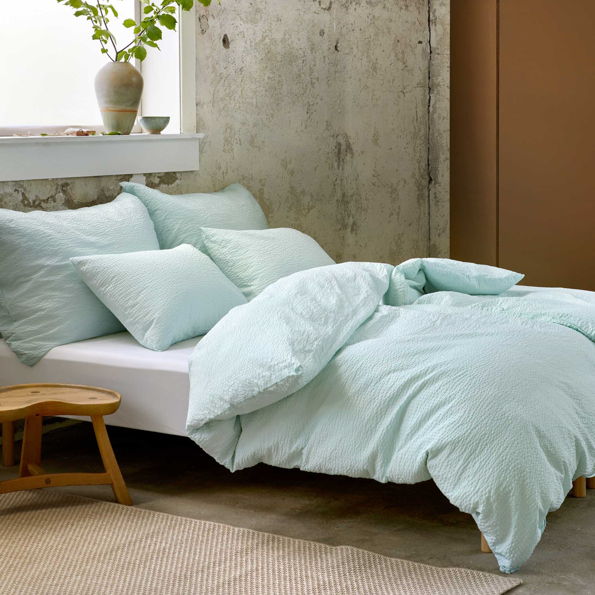 Forside » Sengetøj » Enkelt sengetøj » Enkelt sengetøj 140x200 cm Vævet krepp sengetøj - Lyseblåt sengesæt i 100% blød bomuld - 140x200 cm - Bæk og bølge sengelinned - Sanna - Høie Of Scandinavia Spar42% Høie Of Scandinavia 599,95349,95DKKSpar 250,- På lager Trustpilot Antal Læg i kurv Se mere fra: Høie Of Scandinavia Artikelnummer: 8145-1 Læs vores sengetøjsguide Se vores store udvalg af lagner Har du spørgsmål til produktet? SvanemærketBlødt, let og luftigtEksklusivt luftig vævet krepp Dynebetræk: 140x200 cm Pudebetræk: 1 stk. á 60x63 cm Materiale: 100% blød bomuld - Vævet krepp Vævning: 200TC bæk og bølge (Thread count = antal tråde pr. kvadrattomme) Farve: Lyseblå Design: Sanna Aqua Brand: Høie of Scandinavia Lukning: Dynebetræk med lynlås, pudebetræk med overlap Vask: 60° Tørretumbling: Ja Strygning: Ja Certificering: STANDARD 100 by OEKO-TEX® (19.HIN.85821 Hohenstein HTTI). Din garanti for at produktet er fri for sundhedsskadelig kemi. Certificering: Savnemærket De ekstra fine bomuldstråde skaber en delikat kreppvævning. Perfekt til dig, der elsker den bløde og knitrende fornemmelse. I vævet bomuldskrepp i 100% bomuld skabes de unikke luftlommer i vævningen. Kreppvævningen er varm om vinteren og kølig om sommeren, og giver en blød og sprød fornemmelse af krepp vask efter vask. En klassiker, der ikke behøver strygning og svanemærket or en bedre fremtid. Dette ensfarvet sengetøj er produceret af 100% blød bomuld med vævningsmetoden Bæk og bølge, også kaldet bomuldskrepp. Denne vævning giver rynkeeffekten og gør at der skabes hulrum til små luftlommer i materialet, som gør at sengetøjet føles let, luftig og ofte køligere end andre typer af materialer. Om sommeren vil sengetøjet føles luftigt, og om vinteren vil du kunne mærke varmen fra den bløde bomuld, hvilket er en den unikke fordel som denne skønne kombination af materiale og vævning giver. Sengesættet bør ikke stryges, idet det har sine luftlummer i selve vævningen. Sengelinned med denne vævningstype er særligt god til dig som til tider oplever at have det varmt om natten, her kan sengetøjet tilføje øget åndbarhed og høj absorbering. Køb let pudebetræk til dine ekstra puder her Frisk sengen og soveværelset op med et flot og lækkert sæt sengetøj som dette. Benyt samtidig muligheden for at sikre dig maximal sovekomfort, ved at tilføje et nyt blødt lagen af høj kvalitet. Du finder vores store sortiment af kvalitets lagner her Høie er et skandinavisk brand som står for tradition forenet med nytænkning. Firmaet har eksisteret siden 1850 og har gennem årene været med til at forme og udvikle Skandinavisk tekstil og designs. Sengetøj fra Høie, er hverdags luksus som alle fortjener. Tilbage til Enkelt sengetøj 140x200 cm