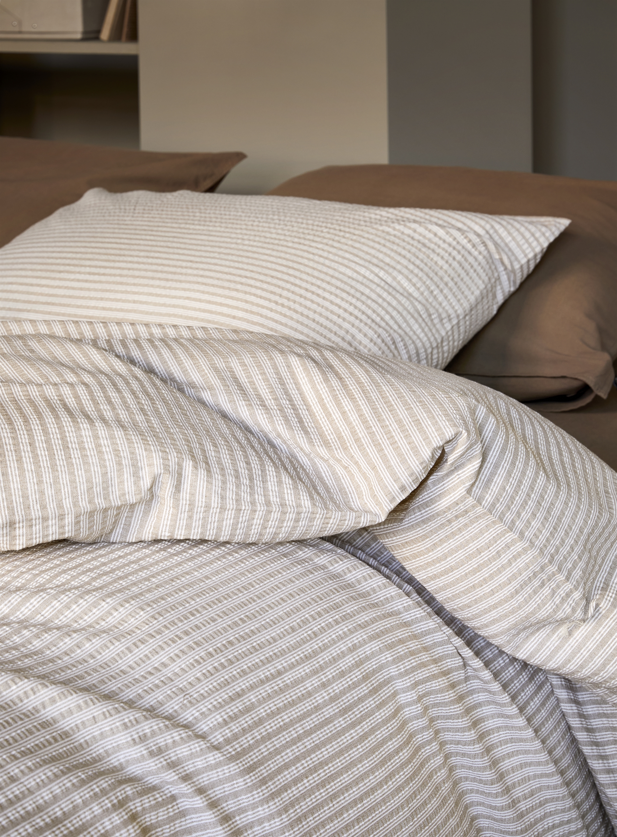 Forside » Sengetøj » Enkelt sengetøj » Ekstra langt sengetøj 140x220 cm Vævet krepp sengetøj 140x220 cm - 100% blød bomuld - Brun med striber - Bæk og bølge sengelinned - Slumre Høie Of Scandinavia Høie Of Scandinavia Skarp pris: 398,00DKK Få på lager Trustpilot Antal Læg i kurv Se mere fra: Høie Of Scandinavia Artikelnummer: 8351-2 Læs vores sengetøjsguide Se vores store udvalg af lagner Se vores store udvalg af dyner 140x220 Har du spørgsmål til produktet? OEKO-TEX® certificeretBlødt, let og luftigtEksklusivt luftig vævet krepp Dynebetræk: 140x220 cm Pudebetræk: 1 stk. á 60x63 cm Materiale: 100% blød bomuld - Vævet krepp Vævning: 200TC bæk og bølge (Thread count = antal tråde pr. kvadrattomme) Farve: Brun med striber Design: Slumre karamelbrun Brand: Høie of Scandinavia Lukning: Dynebetræk med lynlås, pudebetræk med overlap Vask: 60° Tørretumbling: Ja Strygning: Nej Certificering: STANDARD 100 by OEKO-TEX® (19.HIN.85821). Din garanti for at produktet er fri for sundhedsskadelig kemi. De ekstra fine bomuldstråde skaber en delikat kreppvævning. Perfekt til dig, der elsker den bløde og knitrende fornemmelse. I vævet bomuldskrepp i 100% bomuld skabes de unikke luftlommer i vævningen. Kreppvævningen er varm om vinteren og kølig om sommeren, og giver en blød og sprød fornemmelse af krepp vask efter vask. En klassiker, der ikke behøver strygning. Dette stribet Slumre sengetøj er produceret af 100% blød bomuld med vævningsmetoden Bæk og bølge, også kaldet bomuldskrepp. Denne vævning giver rynkeeffekten og gør at der skabes hulrum til små luftlommer i materialet, som gør at sengetøjet føles let, luftig og ofte køligere end andre typer af materialer. Om sommeren vil sengetøjet føles luftigt, og om vinteren vil du kunne mærke varmen fra den bløde bomuld, hvilket er en den unikke fordel som denne skønne kombination af materiale og vævning giver. Sengesættet bør ikke stryges, idet det har sine luftlummer i selve vævningen. Sengelinned med denne vævningstype er særligt god til dig som til tider oplever at have det varmt om natten, her kan sengetøjet tilføje øget åndbarhed og høj absorbering. Køb let pudebetræk til dine ekstra puder her Frisk sengen og soveværelset op med et flot og lækkert sæt sengetøj som dette. Benyt samtidig muligheden for at sikre dig maximal sovekomfort, ved at tilføje et nyt blødt lagen af høj kvalitet. Du finder vores store sortiment af kvalitets lagner her Høie er et skandinavisk brand som står for tradition forenet med nytænkning. Firmaet har eksisteret siden 1850 og har gennem årene været med til at forme og udvikle Skandinavisk tekstil og designs. Sengetøj fra Høie, er hverdags luksus som alle fortjener. Tilbage til Ekstra langt sengetøj 140x220 cm