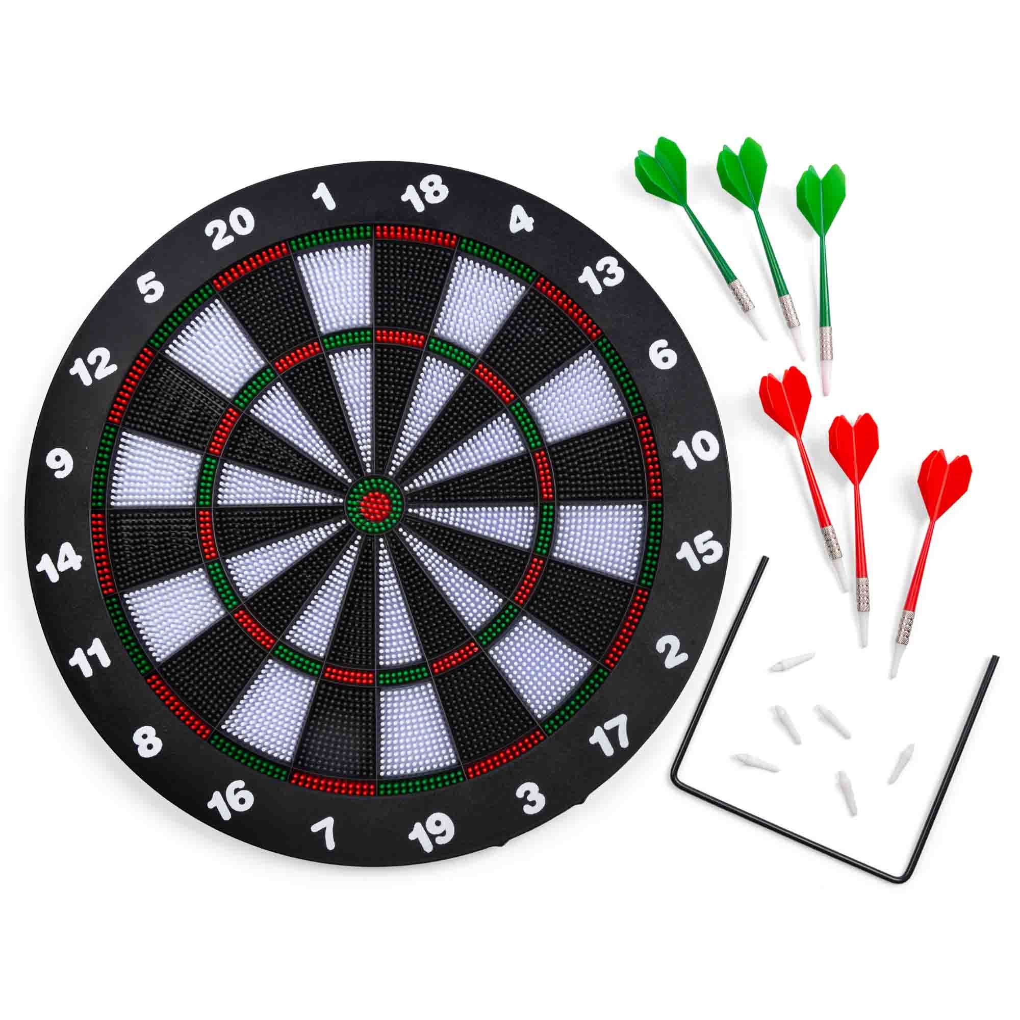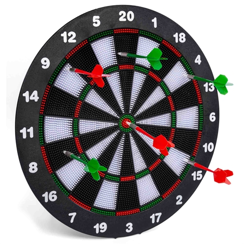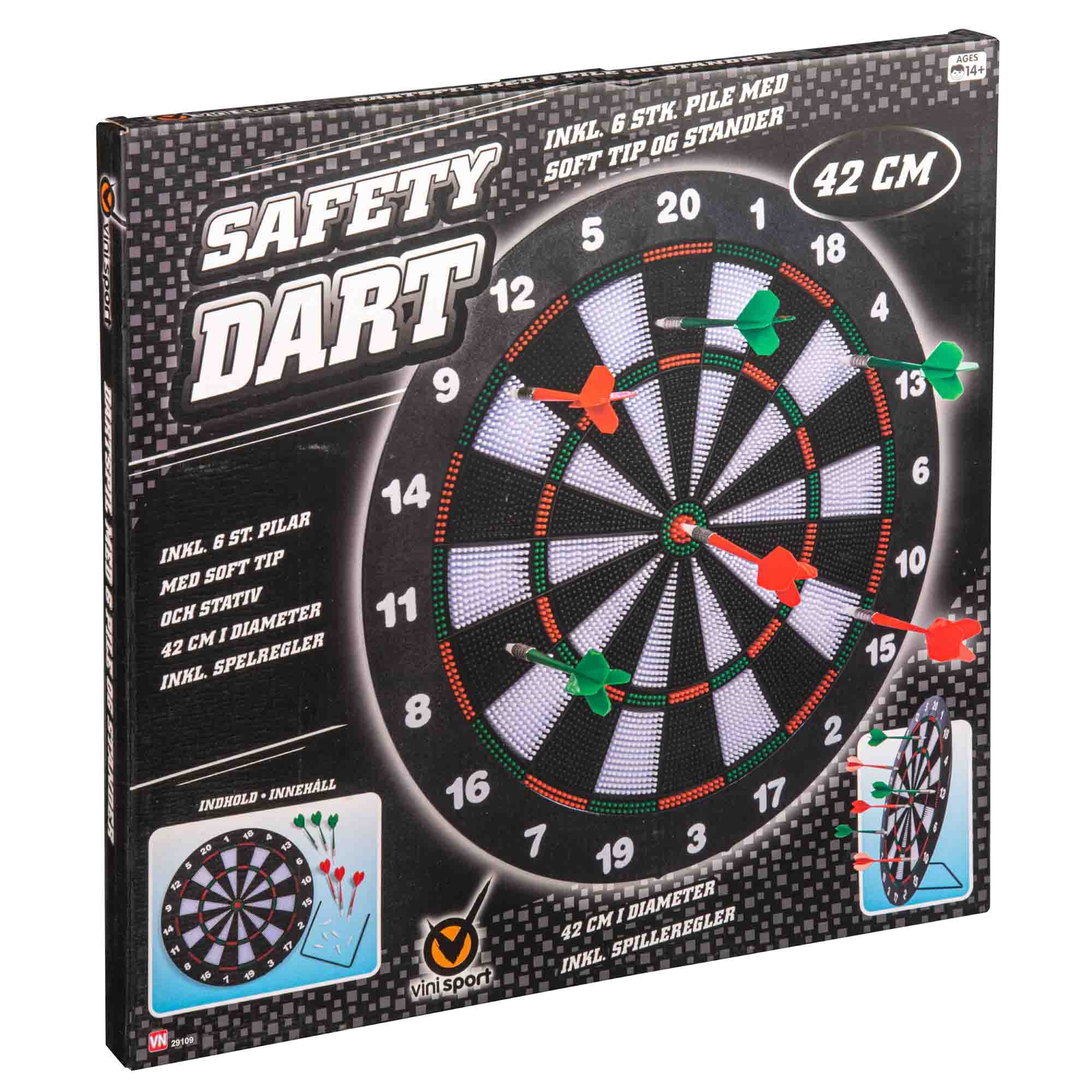 Forside » Legetøj » Forårsleg Vini Dartspil - Klassisk Dartspil til Sjov og Præcision HOME-TEX Skarp pris: 199,95DKK Få på lager Trustpilot Antal Læg i kurv Se mere fra: HOME-TEX Artikelnummer: LEG-VN29109 Har du spørgsmål til produktet? Klassisk dartspil til sjov og konkurrenceStyrker præcision og koncentrationVelegnet til både børn og voksne Underholdende spil til børn og familie Vini dartspil er et klassisk spil, der kombinerer præcision, koncentration og konkurrence. Det er ideelt til både børn og voksne, der ønsker en sjov aktivitet, hvor man kan udfordre hinanden. Spillet egner sig til både fritid og sociale sammenkomster. Klassisk dartskive Dartspillet består af en dartskive med tydelige felter, som gør det nemt at sigte og holde styr på pointene. Det er hurtigt at sætte op og komme i gang med, hvilket gør det let tilgængeligt for både børn og voksne. Når spillerne kaster pilene, trænes præcision og kontrol på en sjov og engagerende måde. Spillet kræver koncentration og giver en udfordrende, men underholdende oplevelse. Safety dartspillet leveres med 6 bløde pile og stander samt en dartskive på 42 cm, hvilket gør det sikkert og velegnet til indendørs leg. Perfekt til inde og udendørs brug Dartspillet kan bruges i hjemmet, garagen eller udendørs, hvor der er plads til at spille sikkert. Tilbage til Forårsleg