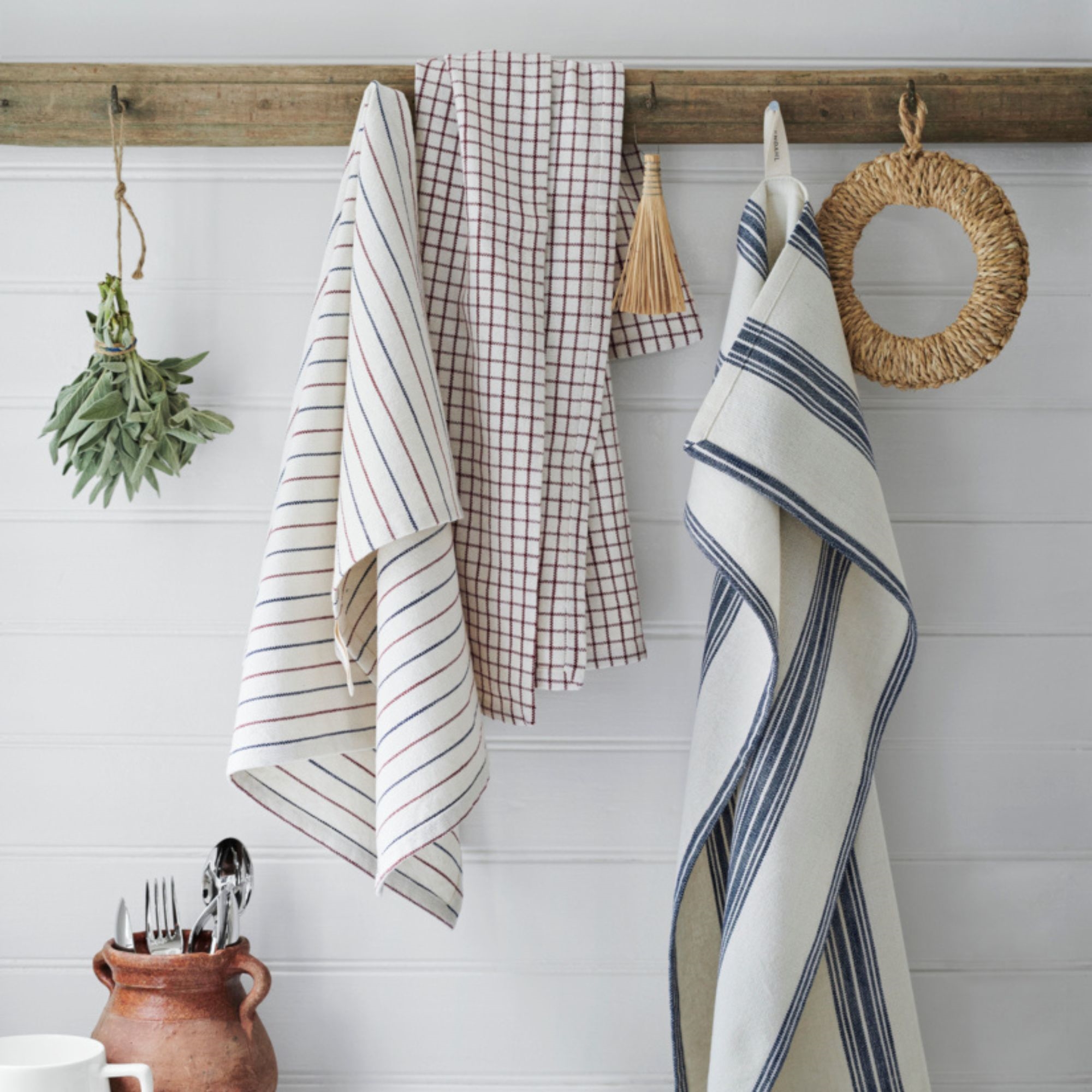 Tilføj både funktionalitet og stil til dit køkken med dette fine viskestykke fra Rosendahl Textiles. Det minimalistiske design med smalle striber i blå og terracotta skaber et moderne og nordisk udtryk, der passer perfekt ind i det stilrene køkken.