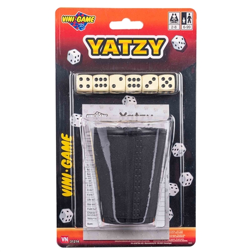 Forside » Legetøj » Forårsleg Yatzy Sæt - Klassisk Terningspil til Hygge og Underholdning HOME-TEX Skarp pris: 39,95DKK Få på lager Trustpilot Antal Læg i kurv Se mere fra: HOME-TEX Artikelnummer: LEG-VN31214 Har du spørgsmål til produktet? Klassisk yatzy sæt med terninger og blokLet at lære og sjovt for alle aldrePerfekt til hygge og sociale spil Strategisk spil for hele familien Yatzy sæt er et klassisk terningspil, der kombinerer held og strategi. Spillet er let at lære og egner sig til både børn og voksne, hvilket gør det til en populær aktivitet i hjemmet og på farten. Det er ideelt til hyggelige spil aftener og sociale sammenkomster. Klassisk yatzy Sættet indeholder raflebæger, 6 terninger og en Yatzy-blok, så man har alt, der skal bruges for at komme i gang med spillet. Yatzy er hurtigt at lære og kan spilles af både begyndere og øvede spillere, hvilket gør det til et oplagt familiespil. Spillet kræver overvejelser omkring valg og point, da spillerne skal beslutte, hvilke terninger der skal beholdes for at opnå de bedste kombinationer. Det gør spillet både sjovt og udfordrende. Samtidig skal der holdes styr på point og muligheder undervejs, hvilket giver en engagerende og koncentrationskrævende spiloplevelse. Perfekt til hjemme og rejse Yatzy sættet er kompakt og nemt at tage med, hvilket gør det oplagt til ferie, weekendture og hyggelige stunder. Tilbage til Forårsleg