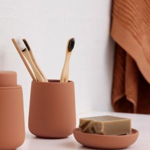 Zone Denmark er kendt for deres gennemførte designserier, hvor produkterne er skabt til at kunne kombineres. Derfor kan du nemt matche dit tandkrus med andre elementer for at skabe en rød tråd i badeværelset.